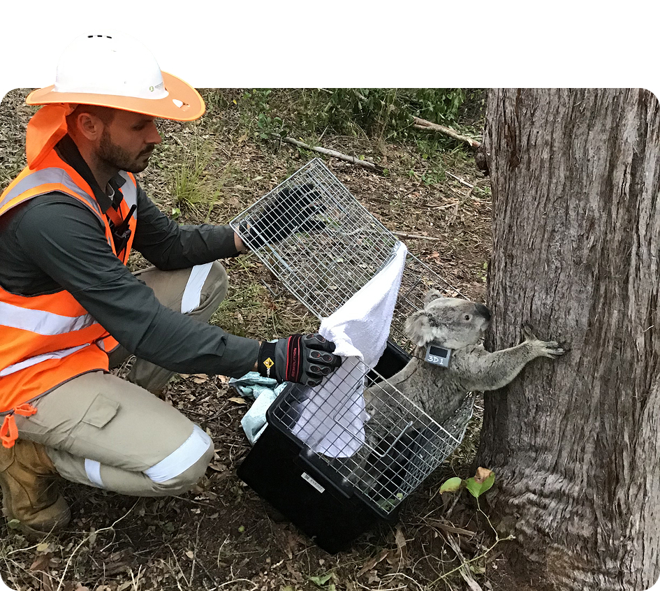 Our Koala Spotters work closely with contractors and machinery operators to ensure that no tree is felled without thorough inspection, and that any koala present is identified and protected. With our support, your project stays compliant, your workforce stays informed and the welfare of koalas remains a priority.