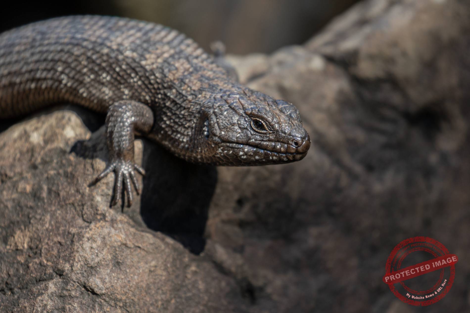 Cunningham’s skink is a large, heavily built lizard, typically reaching 25 to 40 cm in total length. Its dorsal scales are strongly keeled, giving it a rough texture and an almost spiny appearance. Colouration is variable, but individuals are generally patterned in shades of grey, brown and black, often with mottling or bands that provide excellent camouflage among rocks. The ventral surface is lighter, usually pale grey or cream. The head is broad with a blunt snout and the limbs are strong with sharp claws adapted for climbing and gripping rock surfaces. When threatened, the skink may wedge itself into a crevice, making use of its rough scales to resist extraction by predators.